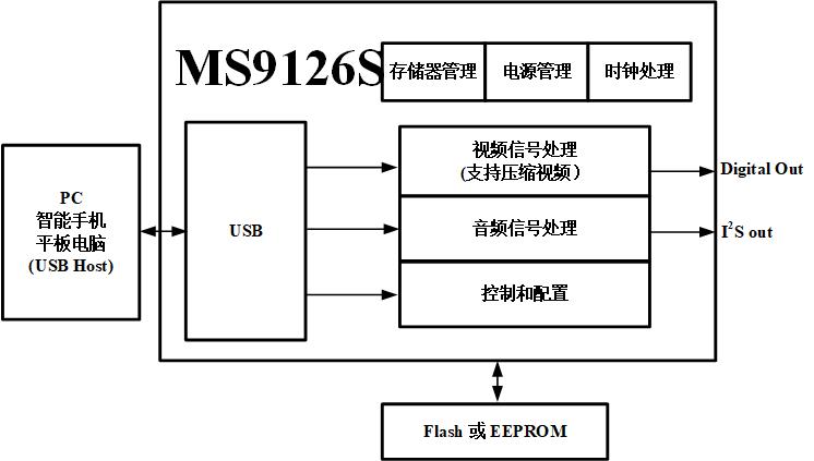 MS9126S是一颗USB投屏器芯片,内部集成USB2.0控制器、数据收发模块、音视频处理模块,支持压缩视频传输,可通过USB接口显示或扩展PC、智能手机、平板电脑的显示信息到更大尺寸的显示设备,支持Digital视频接口输出。